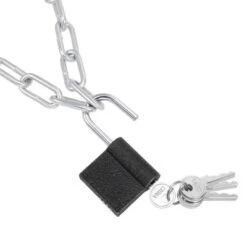 Unique Bargains Bicycle Cycling Zinc Plated 3.28 Feet Long Chain Lock With Padlock Silver