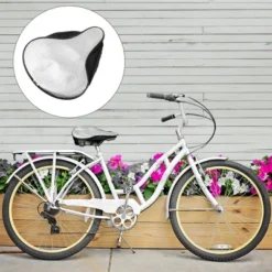 Unique Bargains Bike Bicycle Saddle Seat Cover Comfort Pad Padded Soft Checkered Silver Tone White