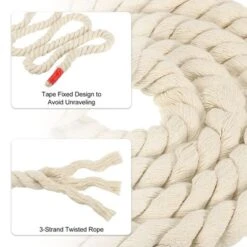Unique Bargains Natural Twisted Cotton Rope 3 Strand Tug Of War Rope With Sealing Tape