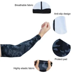 Unique Bargains Basketball Sports Camouflage Cooling Arm Elbow Compression Sleeve Navy Blue 1 Pair