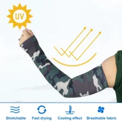 Unique Bargains Basketball Sports Camouflage Cooling Arm Elbow Compression Sleeve Drak Green 1 Pair