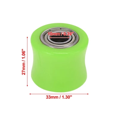 Description: Chain roller pulley slider complete with bearings ready to use. It will match your vehicle chain perfectly, a direct replacement for your broken one. This Chain Roller Pulley Tensioner is made of plastic er and metal material for long durability. It is suitable for most motorcycles, ATV, off road vehicles. Specification: Material: Plastic, Metal; Inner Hole Dia: 10mm / 0.39″; Size: 27x33mm / 1.06″x1.30″ (H*D).Notes: Please confirm the dimension before ordering to make sure this item is perfectly fit.