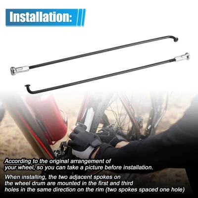 - Color: Black, Silver Tone; Package Content: 36 x Motorcycle Wheel Spokes, 36 x Nipples