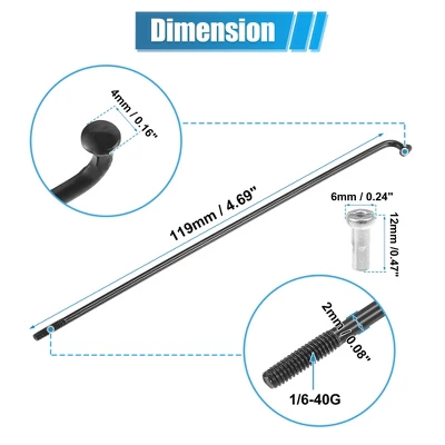 - Spokes Shaft Dia.: 2mm/0.08″, Thread Size: 1/6-40G, Elbow Head Dia.: 4mm/0.16″, Nipple Size:12x6mm / 0.47″ x 0.24″ (L*D)