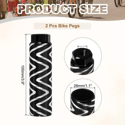 Bicycle pedals designed for BMX, mountain bikes, and general-purpose bikes can be applied to both front and rear wheel axles to provide solid support and stopping. Foot Bicycle Pegs are durable, safe, and reliable. They can support up to 200 lbs and fit front and rear axles. They are also easy to carry others’ tools and provide double foot support. Instruction When you install the bike foot pegs on the rear axle of your bike, please make sure the axle length is more than 5mm (0.2 inch), if the axle length is not enough, you need to remove the screws on the axle, and install the foot pegs on the axle to make sure it is safe. Regularly check the condition and tightness of the foot pegs to ensure they are secure and reliable.