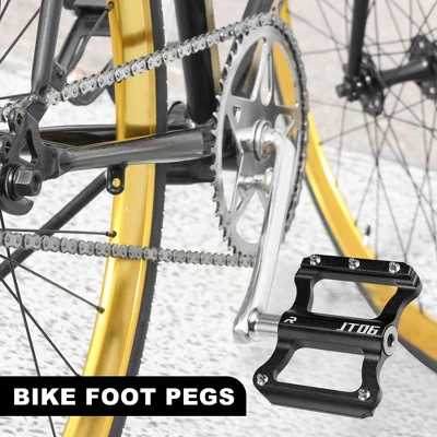 Description: Made of aluminum alloy material, it is easy to install, durable and fashionable, and has a longer service life. Universal fit for bikes, road bikes, mountain bikes, track bikes, MTB, BMX. Align the 9/16″ shaft and tighten directly by hand or tool with no additional action required. Protect feet from being caught by bicycle wheels. The bike pegs are engraved with non-slip grooves for added friction for safety. Don’t worry about accidentally falling off. Good bearing capacity, not easy to break, wear-resistant. Note: Avoid standing while riding to reduce danger. Package Included: 1 Pair Bike Foot Peg.