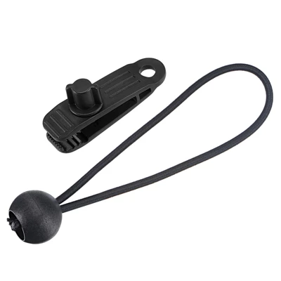 What is this?The ball elastic cords with tarp clamps kit have various applications for indoor or outdoor usages, fit for camping tent, canvases, cargo, hiking, boating, hauling, bundles, kayaks, awnings, banners, gardening, tarps, canes, canopies, tying storage, swimming pool covers and so on.What will I get?Color: BlackMaterial: Plastic, NylonRope Length: 150mm/ 5.90 inchClip Size: 82 x 22.7mm / 3.23 x 0.89 inch (L*W)Package Content: 12 x Rope, 12 x ClipAre there any advantages of this product?Made of nylon material, it can bear a large pulling force and is not easy to loose after buckling onto the objects. There are stable, windproof, wear-resistant, and long-term in use. How to use it?It’s easy to install, you need to grip the edge of the tarp, push on and screw down the jaws to grip, then to secure simply tightening or loosening the screw knobs. Pass the elastic cord through the hole of the clip and tighten up.What should I notice?Do not stretch the rope excessively and be careful that the rope rebound.