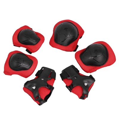 Package Content: 1 Pair x Palm Protectors; 1 Pair x Knee Protectors; 1 Pair x Elbow Protectors.Set skating protective gear for children, designed with red black turtle shell shape the plastic guard, nylon mesh sponge pads, hook and loop closure, and black lining, easy and comfortable to wear. Give knees, elbows, and palms effective protection in skating or other sports activities. Note: Please kindly measure your elbow, knee, and palm-size before ordering.