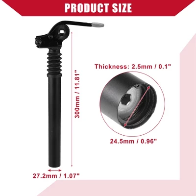 UNIVERSAL: Bicycle Seat Post is suitable for most MTB Mountain Bikes Bicycle.PRODUCT INFORMATION: Material: Aluminum Alloy, Iron. Color: Black. Thickness: 2.5mm / 0.1″. Dimension: 300×27.2mm / 11.81″x1.07″(L*D). Hole Size: 27.2×24.5mm / 1.07″x0.96″(OD*ID).PERFORMANCE: Usually made of aluminum alloy and iron materials, they are portable and durable and can withstand the bumps and impacts of mountain riding. The seat tube post is equipped with a shock-absorbing device inside, which can effectively absorb and reduce the vibration and impact generated during riding, improving riding comfort. The seatpost post usually has an adjustable feature that can be adjusted according to the rider’s height and riding habits to obtain a more suitable riding position and comfort. Appearance design: Stylish appearance and beautiful shape can enhance the overall visual effect of the bicycle.NOTICE: The size is measured by hand, so it may have a little 1-2 mm difference. Please do measure the actual outer diameter then choose the actually required diameter or measure the inner diameter of the frame tube before purchasing. INSTALLATION: DIRECT INSTALL: Direct replace the broken Bicycle Seat Post.
