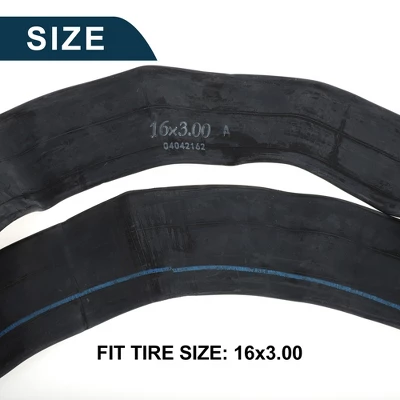 - Bicycle Inner Tyre info: Fit Tire Size: 16×3.00; Valve Type: Bent Valve