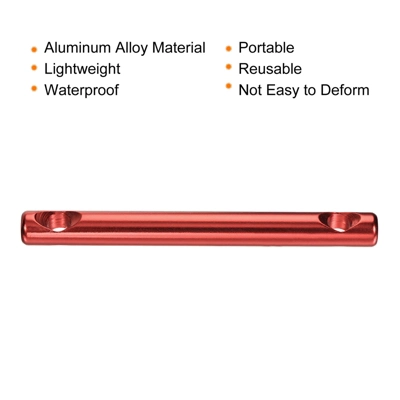 What is this?The rope adjuster has various applications for camping, hiking, backpacking, picnics, fishing, and other outdoor activities. It is widely used for fixing your tent, canopy, awning covers, rain tarp, tarpaulin, and more. What to get? Color: Red;Material: Aluminum Alloy;Hole Diameter: 7mm / 0.3″;Overall Size: 100mmx10mm / 3.9″x0.4″ (L*OD);Package Contents: 6 x Tent Rope Adjusters;Are there any advantages of the product? The tensioner is made of durable aluminum alloy material with anti-oxidation coating, which is lightweight, waterproof, not easy to deform, portable, and reusable. 2 Hole design ensures a tight grip on the tent cord, at the same time, you can adjust the cord to the length you want. How to use it? Easy to use, just let the rope go through one hole, After that, go through the other hole and knot. What to notice? Please confirm the required size before purchase.