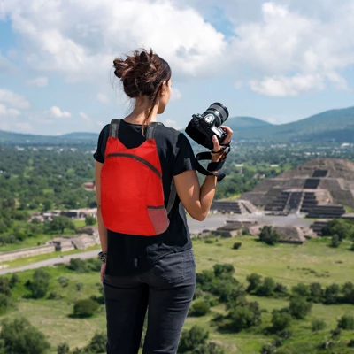 Versatile in function, this foldable backpack is a perfect accessory for various outdoor activities such as hiking, cycling, running, skating, climbing, camping, fishing, traveling, fitness, and going to work. It is suitable for both men and women. Made of durable polyester material, water resistant, light in weight, portable, sturdy, wear resistant, and not easy to break. The main compartment accommodates your travel necessities, like clothing and an umbrella. The other side pocket helps keep your belongings well-organized and easily accessible. Weighing just 0.17lb, this lightweight backpack is convenient to carry and use. Foldable Design When not in use, you can fold it up and store it in your handbag, backpack, suitcase or even pocket. You can unfold it from your checked bags and use it as a carry-on to avoid overweight charges for excess baggage. NOTE: Please confirm the size and color before placing an order.