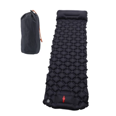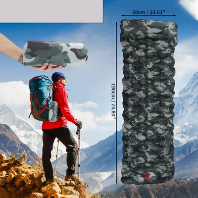 Wide application: The inflated size is 74.80″x23.62″x1.97″, you can use this camping mat for many purposes, such as for camping, hiking, and backpacking, good for sports competitions and flower viewing, home gardens, courtyard barbecues, and other parties.Material: This camping mat is made of good quality 40D nylon TPU material. The product is strong, soft, and comfortable, and it is noiseless to use. It is waterproof. Even if it gets wet on rainy days, you only need to wipe it with a towel.Comfortable: The camping pad also comes with a pillow, which can provide extra support for your neck and head. You don’t need to bring a pillow when you go camping, use the sleeping pad.Easy to Inflate and Deflate: This camping sleeping pad only takes 30 to 60 seconds to inflate. Unlike other traditional inflating methods, it has built-in foot pads. You only need to step on the air pump with your feet to complete the inflation. It is quickly deflated and is convenient for packaging and storage. Women, children, and the elderly can easily complete it.
