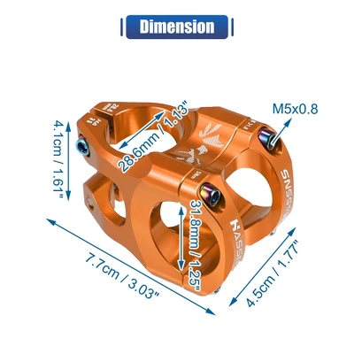 - Size: 7.7×4.5×4.1cm / 3.03″x1.77″x1.61″(L*W*H); Materials: Aluminum Alloy; Package included: 1 Pc Mountain Bike Stem