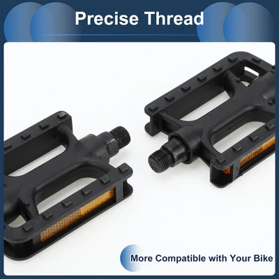 Universal Fit: The Bike Pedal is suitable for Road Mountain BMX MTB Bike, etc. Product Features: Suitable pedal size offer long ride comfort and pedaling efficiency. Anti-slip cleats design, offer you a lot of grip and stability. Fast exchange, save time and energy. Smooth angle design protect your body from harm. Suitable for commuting, recreational riding, BMX, cruisers bicycle, road bicycles, MTB bicycle, mountain bicycles, junior bicycle, city bicycle, etc. Easy to Install: Conveniently designed bicycle pedal for quick and hassle-free access. Package Item: 1 Pair Bicycle Pedal