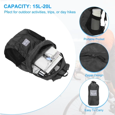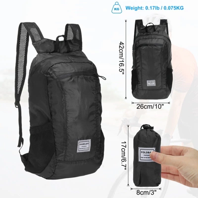 Versatile in function, this foldable backpack is a perfect accessory for various outdoor activities such as hiking, cycling, running, skating, climbing, camping, fishing, traveling, fitness, and going to work. Made of durable polyester material, it is water-resistant, light in weight, portable, sturdy, wear-resistant, and not easy to break. The main compartment accommodates your travel necessities, like clothing and an umbrella, while the front pocket is great for quick access and storage. Two side pockets help keep your belongings well-organized and easily accessible. When not in use, you can fold it up and store it in your handbag, backpack, suitcase, or even pocket. You can unfold it from your checked bags and use it as a carry-on to avoid overweight charges for excess baggage. Please confirm the size and color before placing an order.