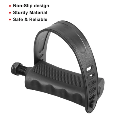 - The bicycle pedal surface has a non-slip design and straps on the top for a good connection to the shoe