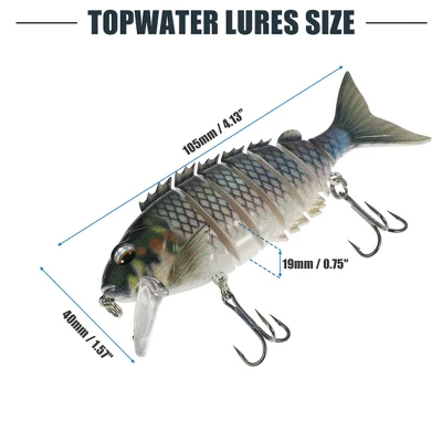 - The bass bait is composed of a fish body made of quality and durable ABS material