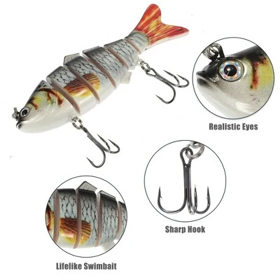 - The bass bait is composed of a fish body made of quality and durable ABS material
