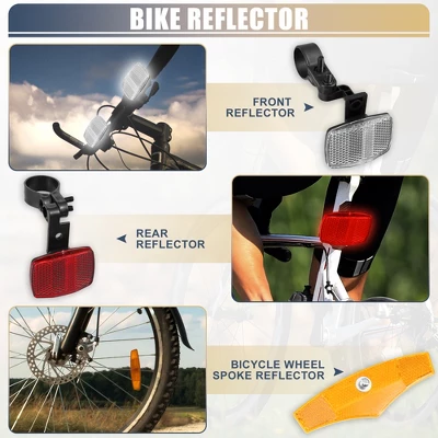 Package Contents: 1 x Red Bike Rear Reflectors; 1 x White Bike Front Reflectors; 2 x Securing Clip(Two Different Calibers), 4 x Bicycle Wheel Spoke Reflectors.
