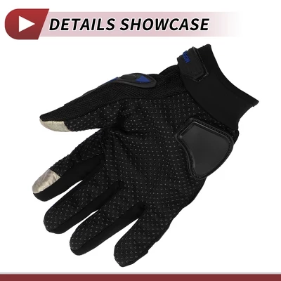 Product Characteristics:The motorcycle gloves offer protection against impacts, safeguarding your hands from scratches and abrasions during rigorous cycling training and rides.Built with double-stitch seams for durability, the gloves withstand any condition. The motorcycle gloves enhances grip and palm protection, offering you a secure and comfortable riding experience.Application:The gloves ensuring rapid heat dissipation and keeping your hands cool for extended periods. Suitable for outdoor sports, cycling, riding, motorcross, racing, dirt bike, ATV, and UTV activities, they are designed for all your adventures.