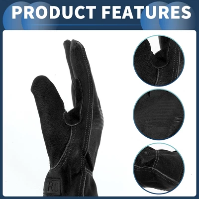 Universal Fit:The Motorcycle Gloves are suitable for outdoor sports, cycling, riding, motorcycle, motocross racing, dirt bike, ATV, and UTV.About This Product:Glove Type: ‎Motorcycle Gloves;Age Range: Adult;Material: Sheep Leather;Size: 22.5×10.7cm/8.86″x4.21″.Product Features:Made with fine and soft, breathable sheep leather that feels soft and gentle on your hands.Breathable and stretchy, flexible and comfortable to wear.Reinforced palm and thumb root area prevents slippage and increases durability, making it durable and long-lasting.Great for motorcycles, bicycles, and outdoor activitiesEasy to Install:Conveniently designed gloves for quick and hassle-free wear.Package Item:1 Pair Motorcycle Gloves.