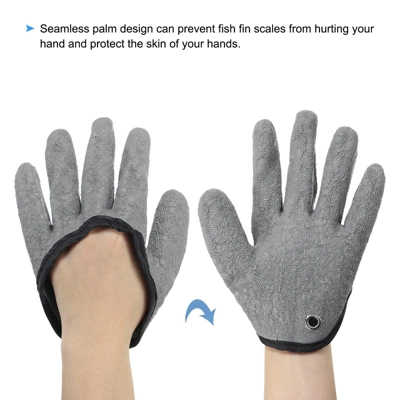 These fishing gloves provide a natural, comfortable fit for most hands, making them suitable for a range of outdoor activities requiring dexterity. They are perfect for kayaking, fishing trips, surf fishing, and handling fish. Additionally, they can be used in mining, agriculture, machine building, and animal husbandry. Made from high-strength level 5 cut-resistant latex, the gloves offer pull-resistant, wear-resistant, waterproof, and puncture-proof features. The seamless palm design protects hands from fish fin scales. The gloves come with a magnetic hook for easy access and portability, allowing them to be hung on a belt. Ensure the correct hand orientation before ordering.