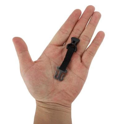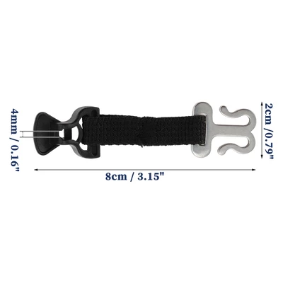 Item Function: 1. Made of quality ABS, nylon and stainless steel, which is durable, not easy to break and has a long service time. 2. This rope buckle is lightweight and compact, therefore it is easy to carry and store, you can take it to whereever you like. 3. Whether it’s a tent or a tent door, it stays firmly in place. This buckle is easy to use and holds securely. 4. It is widely use, it can be used in camping, backpacking, and mountain expeditions etc.. Specifications: Color: Black; Material: ABS, Nylon, Stainless Steel; Stainless Steel Hook Diameter: 3.3mm / 0.13″; ABS Hook Diameter: 4mm / 0.16″; Overall Size: 8x2cm / 3.15″x0.79″(L*W); Package List: 1 Pc Rope Buckle.
