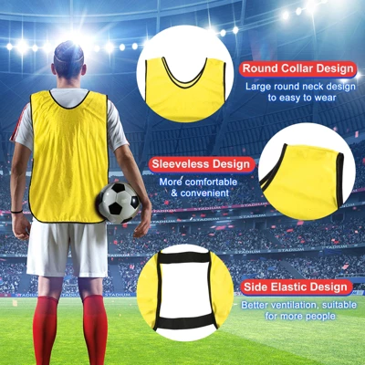 The football training vest is a good choice for group activities such as team practice, sporting events, recreational activities, etc. Widely used in basketball, football, volleyball, rugby, football, and other team sports. The soccer training vest is made from durable satin polyester, delivering a lightweight and breathable feel that keeps you comfortable during intense training. It also provides excellent sweat-wicking, odor-resistant, and quick-drying properties. The fade-resistant fabric ensures that it stays bright even after repeated uses and washes. Stand out on the field with the vibrant soccer training vests. The eye-catching colors not only add style but also improve visibility, making it easier to identify teammates during training or games. The soccer training vest is designed for easy care. It is machine washable and quick-drying, making it perfect for frequent use during training, team activities.