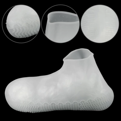 Item Function: 1. Anti-Slip design: Made of silicone and rubber, durable and waterproof, the reinforced nonslip rubber bottom ensures a safe ground grip. 2. Keep your shoes dry and clean in mud-spattered, rain and snow. 3. Increase the service life of your expensive and beloved footwear. 4. Scope of application: Any scene where you want to keep your shoes dry (e.g. rain or snow weather, travel, ride, fishing, beach, bad weather outdoor music festival, car wash, pet bath, park, farm, morning walk, and family cleaning, etc.) 5. These rain boot covers are foldable and take a little space, you can easily put them into the bag after use. 6. The soft vamp is very comfortable for you to wear and walk on. 7. Please Note: Please keep the shoe cover away from tough objects and fire. 8. Product Name: waterproof rain shoe cover; Quantity: 1 pair; Material: Silicone; Package List: 1 Pair Waterproof Rain Shoe Cover.