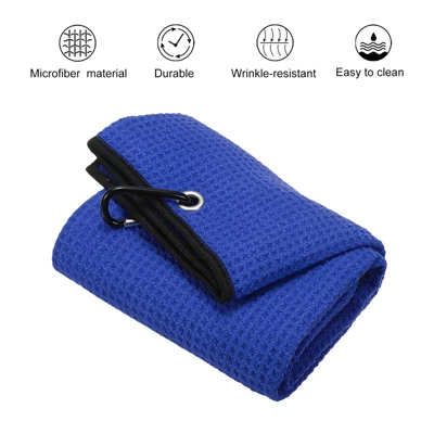 This microfiber towel is suitable for golf courses clubs and other places it can keep clubs balls and hands dry during golf games or training very suitable for golf enthusiasts. This tri-fold golf towel is made of microfiber material which is super absorbent and easy to clean. There are 3 hanging holes on the top of the towel which can be folded and hung. At the same time, it is convenient to fold up and use and it is not easy to fall apart when wiping. It comes with a D-shaped hang hook so you can hang it on your backpack or belt to avoid the loss of towels and it is light and portable. Please note that the size is correct before placing an order.