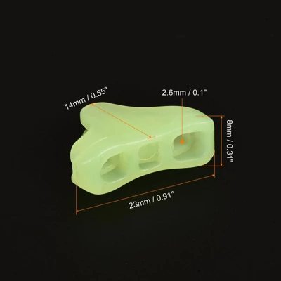 What is this?The rope tensioner is used for adjusting the rope, preventing the rope from slipping and fixing the rope. Widely used in various places, such as beach, sand, lawn, soil, etc. for fixing your tent, sleeping bag, picnic mat, backpack, objects. Suitable for camping, hiking and outdoor travel activities.What will I get?Color: Fluorescent GreenMaterial: PlasticHole Size: 3mmx2.6mm / 0.12″x0.1″Overall Size: 23mmx14mmx8mm / 0.9″x0.55″x0.31″ (L*W*H)Package Content: 20 x Rope TensionerAre there any advantages of the product?Made of luminescent plastic materials, lightweight, and easy to carry. Fluorescence facilitates vision at night to avoid tripping by ropes, and the design ensures a firm grip on the rope. The rope length can be adjusted as required.How to use it?Pass the rope through the hole. After that, thread through the other hole and tie a knot. Place it in sunlight or light, absorb the light source, it will show fluorescent color at night.What should I notice?Please check the diameter of your rope before purchasing.