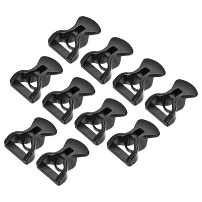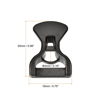 What is this?The rope buckles mainly keep secure ropes from slipping. It has various applications such as outdoor camping, hiking, boating, fishing, gardening, etc. Widely used for fixing your tent, canopy, awning, rain tarp, canvas, tarpaulin, covers, fabric net, and more.What to get? Color: Black;Material: Plastic;Hole Diameter: 4mm/0.16″;Overall Size:25mmx19mm / 0.98″x0.75″(L*W);Are there any advantages of the product?Made of durable plastic material, wear-resistant, lightweight, portable, and reusable. The two-hole design ensures a tight grip on the line. At the same time, you can adjust it to the length you want. How to use it? Just let the rope go through one hole. After that, go through the other hole then knot it. What to notice?Please check the diameter of your rope before purchasing.