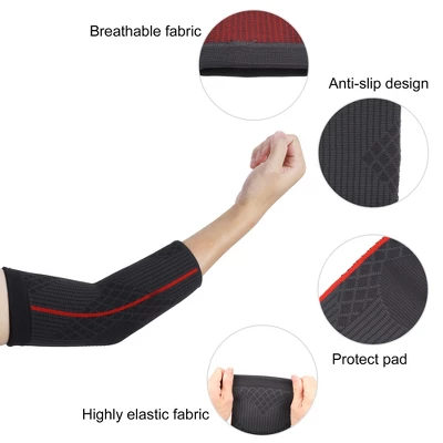 Item Function: 1. Fit for your elbow well. It is made of quality material, tight, fitted, and breathable comfortable fabric that absorbs sweat and breathes while providing protection for your elbows. 2. With high elasticity and breathable, it makes you more comfortable in the movement to enjoy. 3. Ergonomic design, It can make the elbow protector fit your elbow better and prevent it from falling off during use. 4. Multiple sports use, widely used in weightlifting, running, baseball, hiking, volleyball, badminton, cycling, skiing, basketball, gym, soccer, soccer, rock climbing, etc. Specifications: Product Name: Elbow Pads, Material: Nylon, Quantity: 1 Pair, Package List: 1 Pair Elbow Pads.