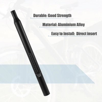 Easy to install. Made of aluminum alloy, durable materials for long-time service. Suitable for most of mountain bikes, road bikes, MTB, etc. There is a safe line mark on the seat post. Please insert at least above the minimum safety line. Installation Step: 1. Release the bolt of the old seat and unload the seat; 2. Fix the seat on the new seat; 3. Install it on your bicycle rack. Note: The size is measured by hand, so it may have a little 1-2 mm difference. Please do measure the actual outer diameter then choose the actually required diameter or measure the inner diameter of the frame tube before purchasing. Specification: Material: Aluminum Alloy; Color: Black; Package Included: 1 Pc Bicycle Seat Post.