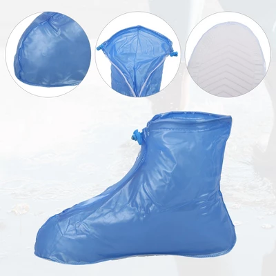Item Function: 1. Anti-Slip design: Made of PVC and rubber, durable and waterproof, the reinforced nonslip rubber bottom ensures a safe ground grip. 2. Keep your shoes dry and clean in mud-spattered, rain and snow. 3. Increase the service life of your expensive and beloved footwear. 4. Scope of application: Any scene where you want to keep your shoes dry (e.g. rain or snow weather, travel, ride, fishing, beach, bad weather outdoor music festival, car wash, pet bath, park, farm, morning walk, and family cleaning, etc.) 5. These rain boot covers are foldable and take a little space, you can easily put them into the bag after use. 6. The soft vamp is very comfortable for you to wear and walk on. 7. Please Note: Please keep the shoe cover away from sharp-objects and fire. 8. Product Name: waterproof rain shoe cover; Quantity: 1 pair; Material: PVC; Package List: 1 Pair Waterproof Rain Shoe Cover.